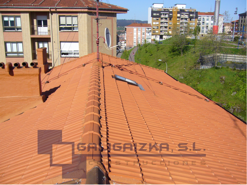 C/ ZUNZUNEGUI, 2 (PORTUGALETE): Cubierta de teja, claraboya, impermeabilización de chimeneas con resina.