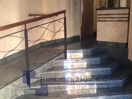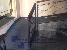 C/ MUGAKOA, 31 (PORTUGALETE): Interior de portal combinando mámoles, barandilla de forja/madera, rampa interior antideslizante.